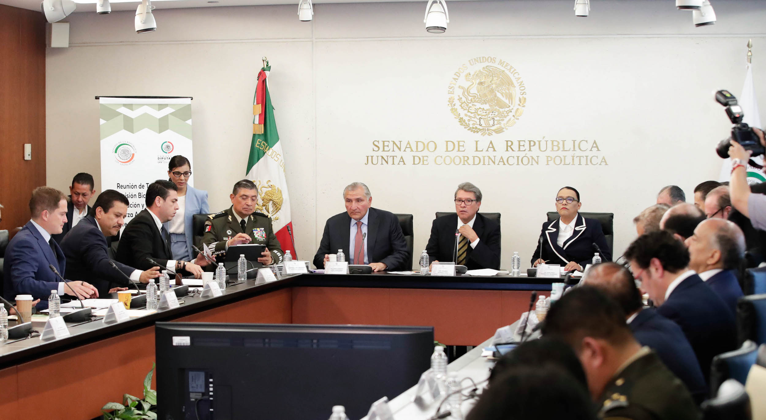 En el encuentro, presidido por el Secretario de la Defensa Nacional, General Luis Cresencio Sandoval González, y el Presidente de la Comisión Bicameral, Senador Cristóbal Arias Solís, se contó con la participación de destacados funcionarios, incluyendo la Secretaria de Gobernación, Maestra Luisa María Alcalde Luján, y la Secretaria de Seguridad y Protección Ciudadana, Licenciada Rosa Icela Rodríguez Velázquez, entre otros.