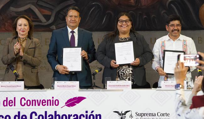 SCJN y Secretaría de las Mujeres firman convenio por justicia igualitaria