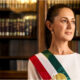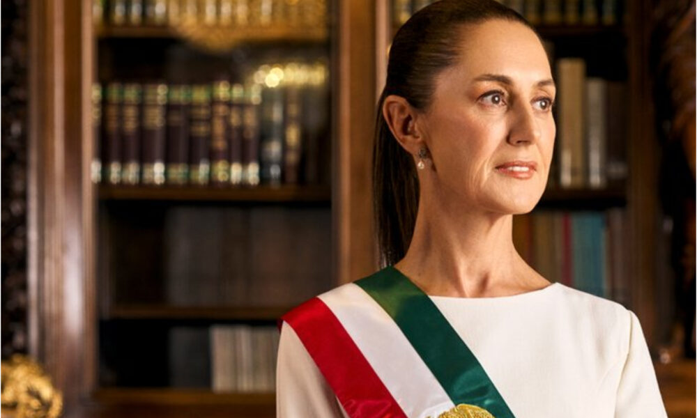 En el clip, se observa a la mandataria vestida con un elegante vestido blanco y la banda presidencial puesta, posando en una oficina de Palacio Nacional.