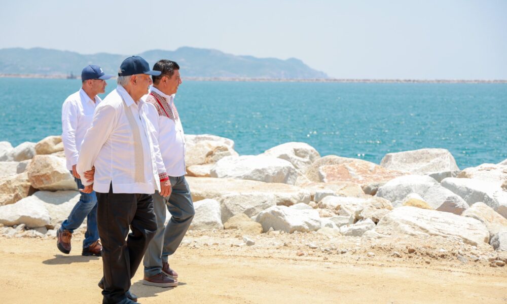 El presidente Andrés Manuel López Obrador verifica los avances del proyecto Transístmico que conectará el Pacífico con el Golfo de México