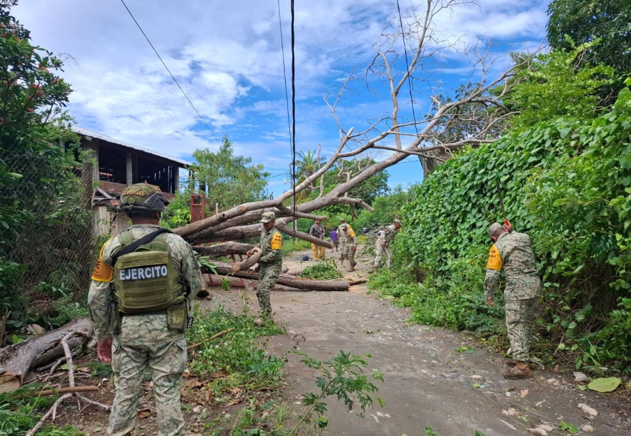 El personal militar realiza recorridos de vigilancia en zonas de riesgo, evacuación de personas, limpieza y desazolve de inmuebles, despeje de carreteras y monitoreo de ríos y cuerpos de agua, en coordinación con autoridades locales, estatales y federales.